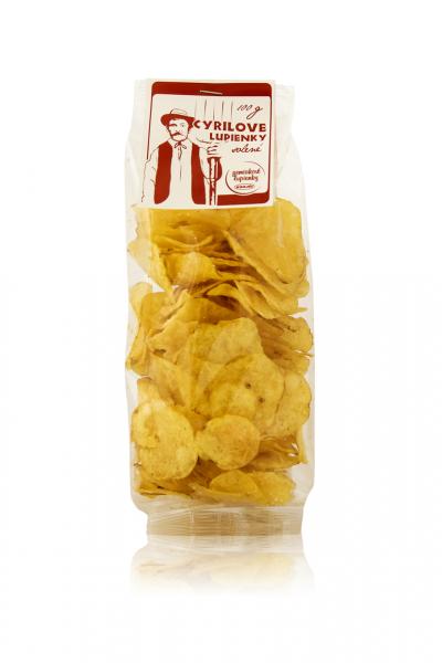 - Tradycyjne ziemniaczane chipsy Cyrila, smażone na kolor złoty, kruche i chrupiące. Podstawowe składniki przy ich produkcji to wybrane odmiany ziemniaków i 100% czeski olej rzepakowy.