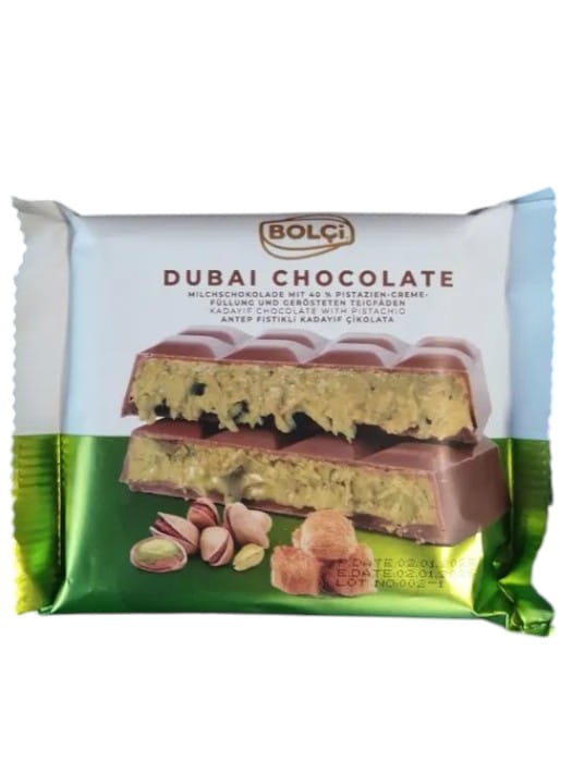 Czekolada dubajska z nadzieniem pistacjowym DUBAI CHOCOLATE BOLCI 100 g