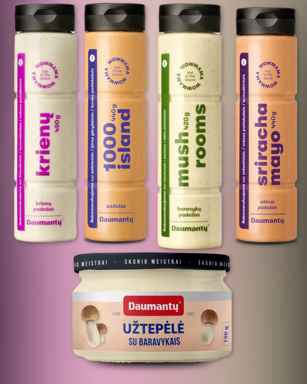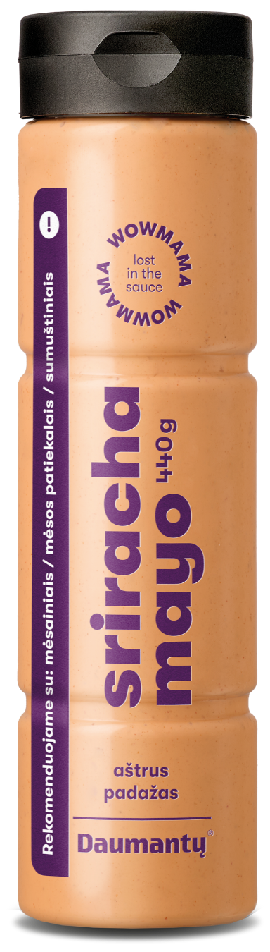 Sos Sriracha Mayo 440 g marki Daumantų to wyjątkowe połączenie pikantnej papryki z delikatną, kremową bazą majonezową. Doskonale podkręca smak burgerów, frytek, kanapek i dań z grilla. Gotowy do użycia – wystarczy odkręcić i dodać do ulubionych potraw.